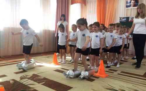 Завершилась неделя космоса спортивно-познавательным досугом в форме космического путешествия. Инструктор по физической культуре Ткачук Н.Ю. предложила детям старшего дошкольного возраста стать космонавтами и пройти «предполетную» физическую подготовку. Сплоченность экипажей «космических кораблей» «Восток» и «Молния» помогла достойно пройти испытания. В завершении досуга все участники получили апельсины, напоминающие по форме планеты