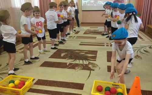 На каждом военном рубеже стояли военнослужащие, работники детского сада и родители воспитанников. Военнослужащие сообщали детям задание, отмечали правильность его выполнения. В одних заданиях учитывалась ловкость или меткость выполнения, а в других — скорость. Дети с интересом выполняли все задания, с удовольствием проводили время на свежем воздухе. На последнем этапе получив карту-план, команды искали пакеты с секретными документами. Все «Документы» были доставлены в штаб.