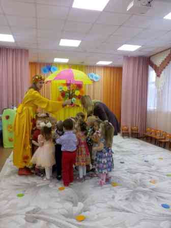 Для ребят это запоминающийся, радостный и яркий праздник, который помогает им закрепить представления об осени как времени года. И хоть осень и называют «унылой порой», тем  не менее, дети больше всего радуется осенним ярким разноцветным листьям, опавшим с деревьев, сбору урожая и сказочным героям, пришедшим в каждую группу на праздник. В этот раз к воспитанникам групп приходили в гости, мама-зайчиха, медведь, лиса, гриб-боровик, кот Матроскин с  Шариком и, конечно же, красавица осень. Каждый раз праздник заканчивался угощением от Осени.