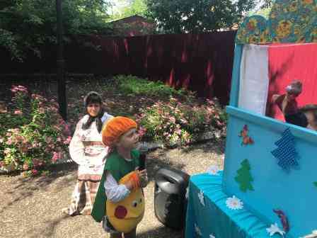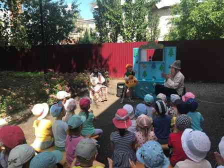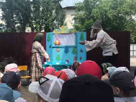 Кукольный театр – одно из самых любимых зрелищ детей дошкольного возраста. Он привлекает детей своей яркостью, красочностью, динамикой. В кукольном театре дети видят знакомые и близкие игрушки: мишку, зайку, собачку, кукол и др., – только они ожили, задвигались, заговорили и стали еще привлекательнее и интереснее. Необычайность зрелища захватывает детей, переносит их в совершенно особый, увлекательный мир, где все необыкновенно, все возможно. Вот и в летний период мы не забыли о нём. Дети старшего дошкольного возраста с большим удовольствием показали малышам кукольное представление «Колобок на новый лад». Кукольный спектакль получился поучительным, красочным и интересным. Ребята  долго аплодировали юным артистам и выразили желание снова побывать на представлении.