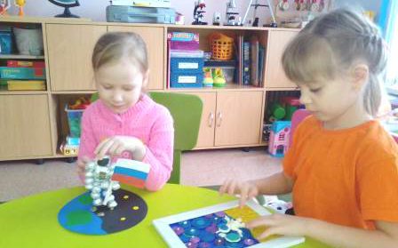 Космическая тема всегда была интересна для детей. Сильные и смелые люди — космонавты, загадочность планет, возможность жизни других цивилизаций на этих планетах волнуют и увлекают подрастающее поколение. В детском саду прошла тематическая неделя, посвящённая космосу, которая оказалась насыщенной и плодотворной. Педагоги старшей и подготовительной групп запланировали и провели различные мероприятия.  Беседы на темы: «Земля — голубая жемчужина Вселенной», «Животные — космонавты», «Что такое невесомость?», «Легенда о Дедале и Икаре». Ребята рассмотрели на слайдах воздушные шары, дирижабли, аэропланы, самолёты, вертолёты. Дети задавали вопросы, рассуждали, делали выводы. С большим интересом они познакомились с Солнечной системой, в которой находится наша планета Земля, узнали о Луне, спутнике Земли. Воспитатели провели познавательное занятие «Путешествие в космос» и вечер загадок на космическую тему. А словесные, дидактические, сюжетно-ролевые игры способствовали закреплению материала, расширению детского словаря, кругозора. Полученные знания дошкольники отразили в продуктивной деятельности. Под руководством взрослых они выполнили красивые аппликации на темы «Космос» и «Ракета». В группах были оформлены выставки детских работ, мини выставки,посвященные Дню космонавтики. Завершением тематической недели в старшем дошкольном возрасте прошли  спортивное и  музыкальное развлечения «Необъятный космос», «Космическое путешествие». Ребята совершили виртуальный полёт в космическое пространство, слушали музыку космоса. Полетали на «метеоритах», выложили из звёзд дорожку млечного пути, переносили грузы из одного отсека космического корабля в другой. В ходе развлечения дети показали скорость, ловкость, сноровку, смекалку и умение сопереживать и поддерживать друг друга. Тематическая неделя оказалась нужной и полезной для ребят. Они смогли осознать свою причастность к жизни Родины, планеты, прониклись чувством гордости и уважения к своей стране, знаменитым людям — истинным патриотам Отечества.