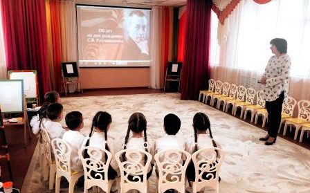 1 апреля весь мир отмечает 150-летие со дня рождения легендарного композитора. В этот день музыка С. В. Рахманинова звучит во всех учреждениях культуры и образования. МБДОУ «Детский сад № 38 «Апельсин» присоединился к Всероссийской акции «Единый Рахманиновский урок». В форме музыкальной гостиной прошли мероприятия в двух корпусах о С.В. Рахманинове, о создании великих музыкальных произведений, о посещении Рахманиновым Тамбовской области села «Ивановка». Прекрасные композиции «Вокализ» и «Сирень» поразили детскую аудиторию своей лиричностью, яркостью, душевностью! Итальянскую польку дети с удовольствием прослушали в разном исполнении и охотно потанцевали под звуки не тлеющего произведения. Вдохновившись творчеством Рахманинова, в частности романсом «Сирень», дети передали свои эмоции с помощью красок, изобразив весеннюю сирень.