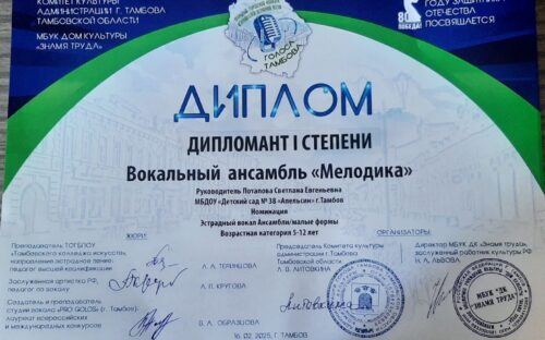 16 февраля воспитанники нашего детского сада приняли участие в Открытом городском конкурсе эстрадной песни «Голоса Тамбова» на базе МБУК ДК «Знамя Труда». Два вокальных коллектива Детского сада № 38 «Апельсин» дебютировали на большой сцене с патриотическими песнями.