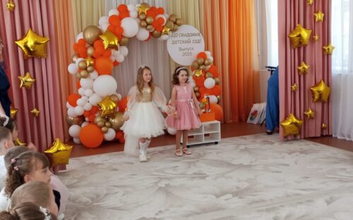 Начался выпускной с торжественного парада выпускников. Под музыку, все присутствующие в зале аплодисментами встречали повзрослевших, красивых и нарядных наших любимых воспитанников. Ребята в течение всего праздника показывали свои знания и умения, которые приобрели за эти годы в детском саду. А потом — радость, веселье, шутки, песни, танцы, игры. Мы отпускаем наших выпускников покорять новые вершины. Пусть сбудутся все их мечты!